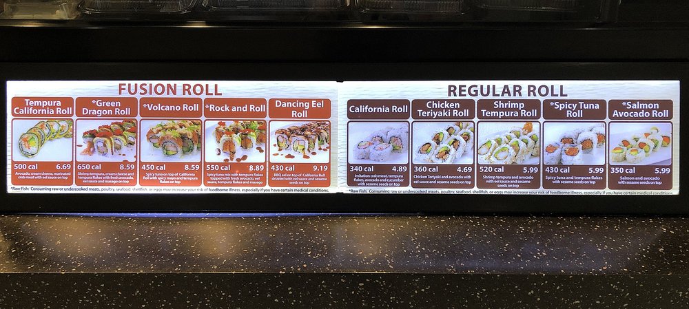 California Roll (8 PCS) Imitation crab meat, avocado, cucumber. 330 Calories.